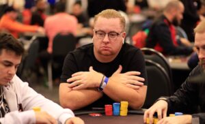Carlos Serrano, o “Crumbs”, foi quem teve a má notícia no salão do Expocentro. O jogador colombiano acabou eliminado num embate pré-flop contra Kaio Camargo, o “Kaiotex”, depois de começar o dia com um dos menores stacks ainda vivos na competição.