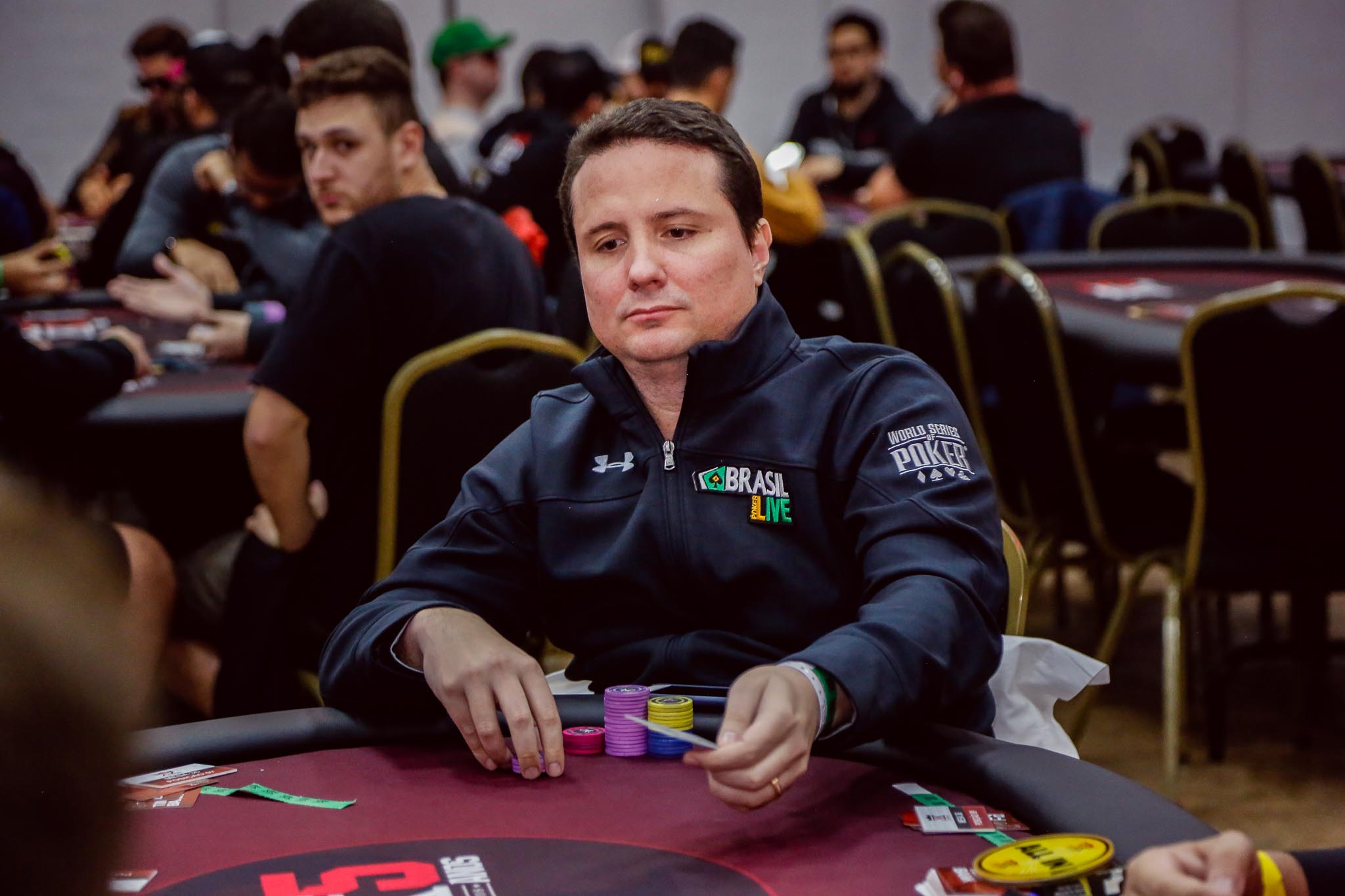 Bruno Foster, com 537.000 no total, não pensou por muito tempo para anunciar all in por cima. Então, a ação voltou para Dayan, que pediu contagem das fichas.