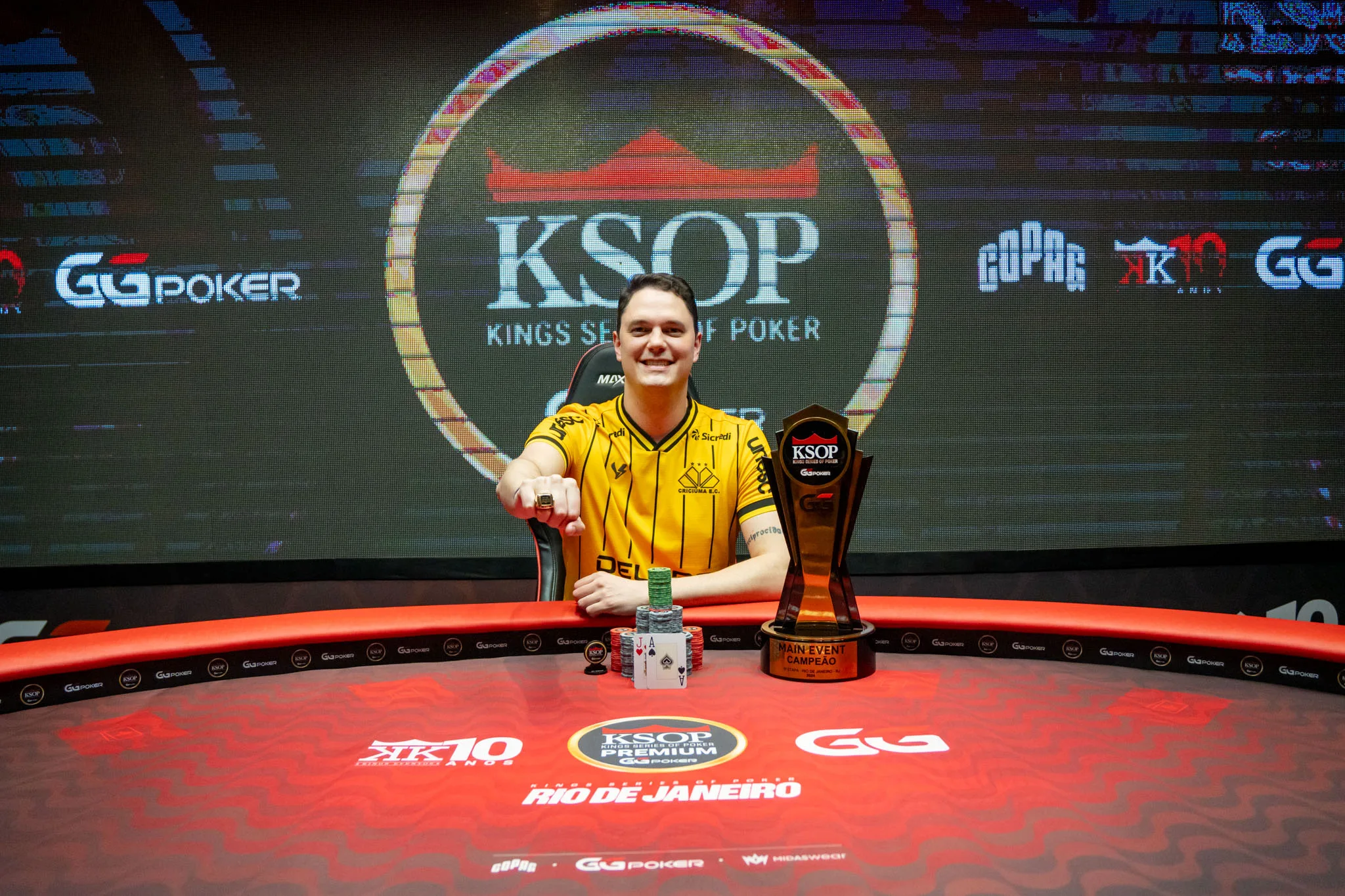Luis, que conta com bons resultados no online, disse se sentir no ‘melhor momento da carreira’. Ainda assim, faltava a cravada no live; em 2025, ele foi vice-campeão do High Roller 6-Max do KSOP South America. Dessa vez, o maior troféu, conquistado num field de 68 entradas, não ia escapar.