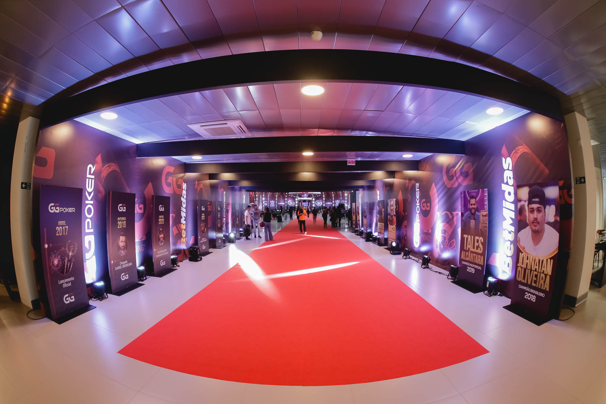 - A entrada do Expocentro estilosa com banners de campeões e da GGPoker