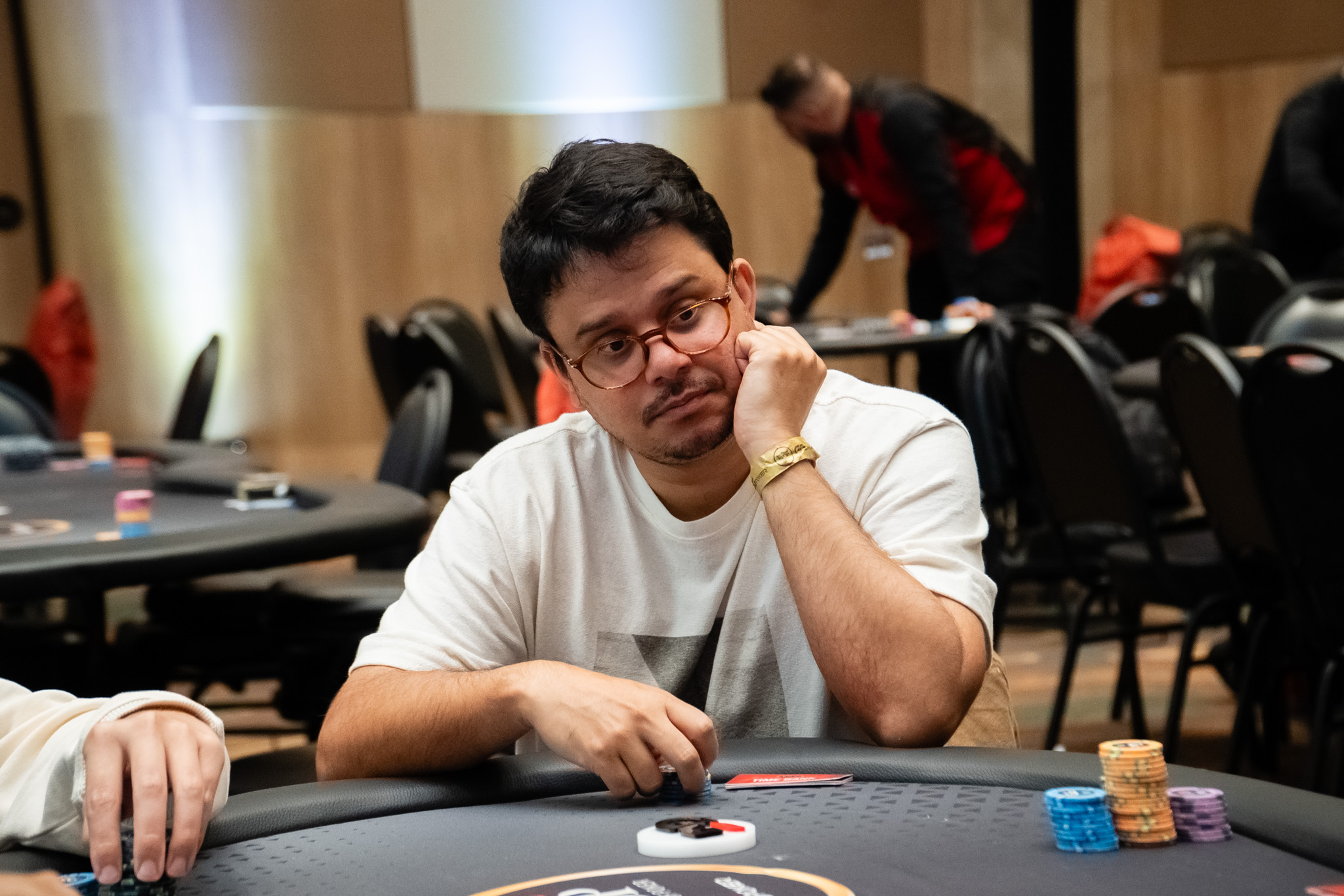 O jogador de São Paulo terminou o Dia 1 na liderança com 1.870.000 fichas. Boa parte disso veio em um pote na reta final, onde uma sequência nuts contra trinca lhe rendeu muitas fichas. O segundo colocado é Guilherme Paz, jogador de Santos, com um total de 1.545.000 fichas.