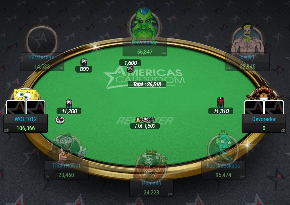 Os envolvidos foram “WOLF012”, que optou em não revelar sua identidade, e Dan Roussel, o “Devorador”. Na mão em questão, o primeiro folda uma diferença de 0,6 blinds depois de dar um 3-bet em Roussel de sete blinds. Em sua defesa, “WOLF012” disse que estava jogando tantas mesas no momento que acabou não percebendo a mísera diferença para dar o call. Ele sequer se lembrava da jogada no primeiro contato do Mundo Poker.