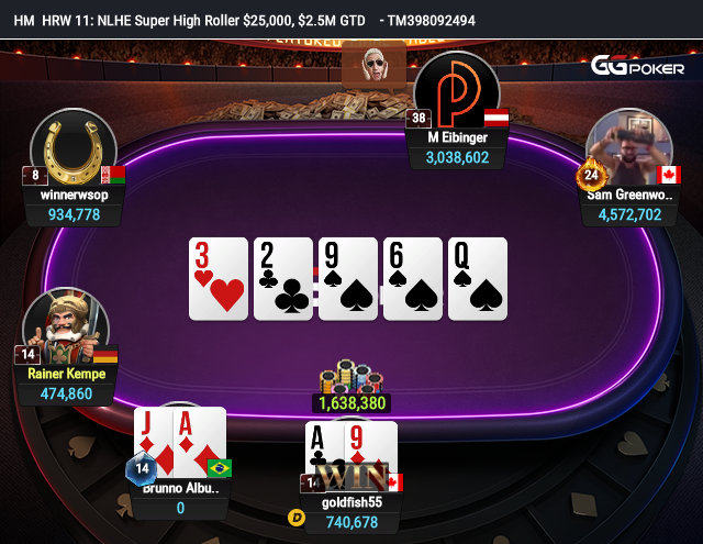 Em caso de título, Brunno alcançaria a maior forra da carreira, superando os US$ 622.300 quando foi vice do WSOP, superado por Fedor Holz no heads-up. Ele foi o único brasileiro inscrito no torneio e não vendeu nenhuma cota dentro do site, como faz normalmente. A bola está batendo na trave, uma hora ela entra.