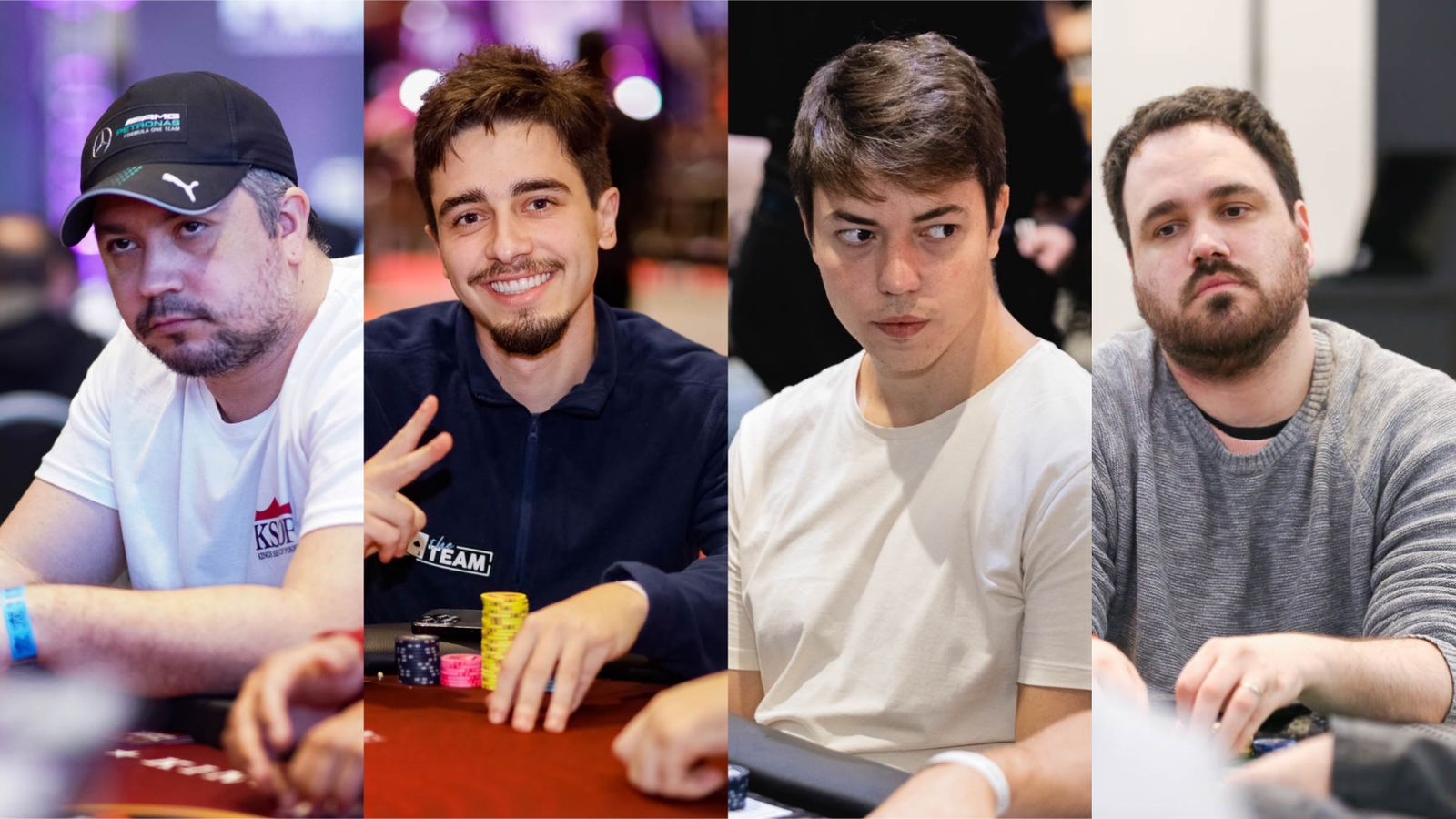 E depois de dois dias de competição, o field do torneio que tem buy-in de US$ 2.650 foi reduzido para apenas 61 competidores, sendo quatro deles brasileiros. Quem puxa a fila é Bruno Cardoso, o “19onurB95”, que terminou com 28.840.358 fichas, sendo o 8º do chip count.