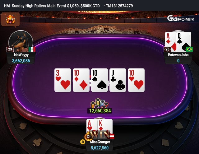 Bruno Volkmann virou o chip leader depois desses embates contra Brombim, mas sofreu com o baralho no 4-handed. Ele levou duas bad beats em três mãos para ver todo seu stack ir para o ralo. Primeiro, ele teve QQ quebrada para o A9 de Luigi Soncin. Depois, “MissGranger” tentou colocar pressão e shovou K5s. Volkmann pagou com JJ no big blind e um K veio no turn para deixa-lo com uma recompensa de US$ 38.551.