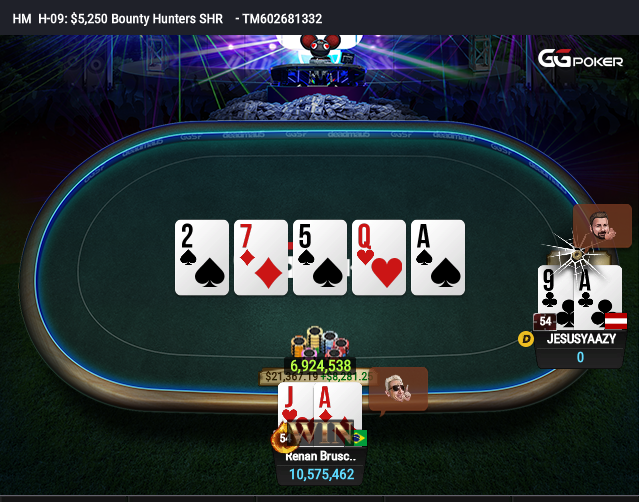 Foi exatamente o que aconteceu nesta segunda-feira (05). Em mais um dia memorável do incansável e perfeccionista jogador gaúcho, o golaço veio. Aconteceu no Evento #09-H da Spring Festival, o US$ 5.250 Bounty Hunters SHR. O torneio high stakes com um qualificadíssimo de 175 entrar terminou com uma vitória contundente de Renan Bruschi.