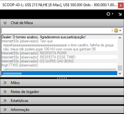 HU entre Guilherme Zingano e Leocir Carneiro termina com provocações entre NeTTeam e Step Team no chat do PokerStars