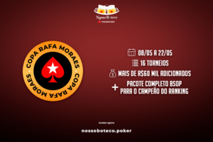 A Copa Rafa Moraes foi anunciada para acontecer entre os dias 08 e 22 de maio e contará com 16 eventos na grade. Ela acontece no “Nosso Boteco”, a nova versão do Boteco do Akkari, um home game no PokerStars. Serão 4 freerolls ao longo das datas, além de torneios que vão do buy-in US$ 0.55 até US$ 11. Além da premiação vinda através das inscrições, R$ 60 mil serão adicionados pelo próprio jogador e seus patrocinadores.