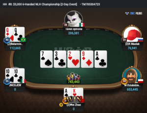 Wei Zhao acerta o river em all in triplo e puxa pote de quase 100 bbs contra Belarmino de Souza na WSOP Online