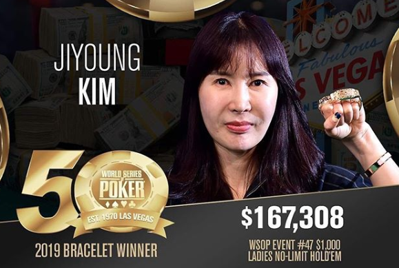 A espera terminou: a sul-coreana Jiyoung Kim foi campeã do Evento #47: US$ 1.000/US$ 10.000 Ladies No-Limit Hold’em Championship, da WSOP, conquistando seu primeiro bracelete e a forra de US$ 167.308. Ela derrotou o field de 968 jogadoras e garantiu a vitória, após superar a americana Nancy Matson no heads-up, que ficou com o prêmio de US$ 103.350.