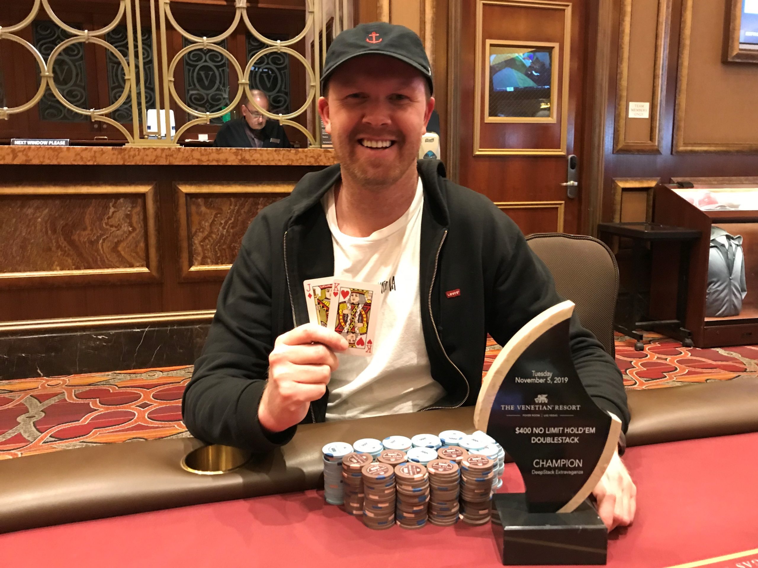 Para deixar tudo ainda mais especial, o jogador quebrou um par de reis na mão final. A ação começou no flop e terminou em all in, com Marius segurando contra . O lituano encontrou uma trinca no turn e confirmou o título após o river .