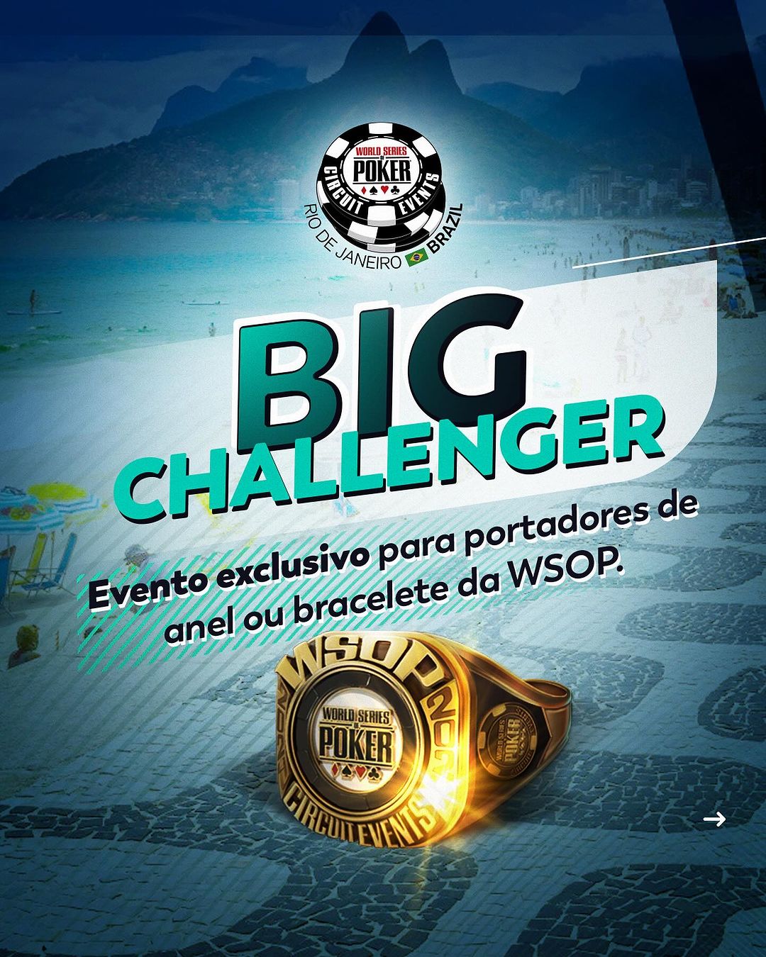 Na próxima semana, a WSOP Circuit desembarca no Rio de Janeiro para mais uma etapa brasileira a partir do dia 13 de março e irá distribuir 16 anéis da série mundial. E um deles será bastante especial, pois premiará de forma exclusiva jogadores que já possuem bracelete ou anel com o torneio Big Challenger.