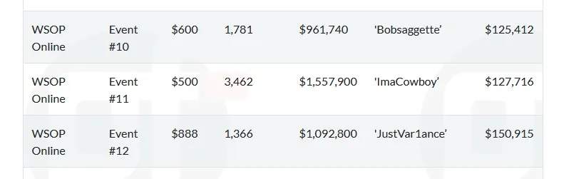 No entanto, trata-se de um erro na atualização do site da WSOP. Joshua Remitio foi, de fato, campeão de um dos torneios, o Evento #10, e ganhou um bracelete. O segundo, no entanto, trata-se de um erro. As informações foram repetidas para o Evento #12, com todos os jogadores nas mesmas posições.