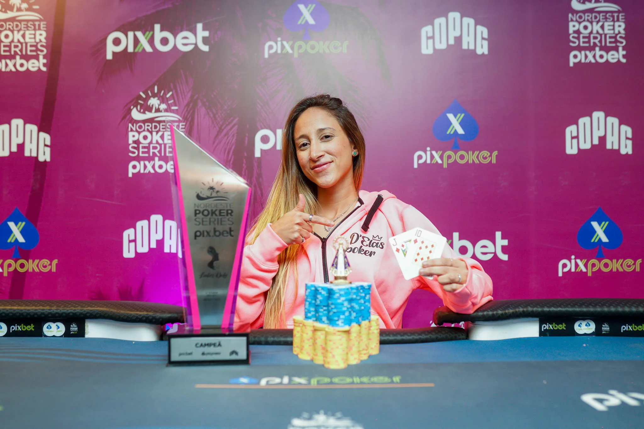 O sábado foi especial no NPS Pixbet Recife com a consagração de três campeões nos feltros do Novotel Marina. No torneio mais charmoso da grade, o Ladies Only, quem brilhou foi a jogadora local Ana Lira, que levantou o troféu diante de um field qualificado com 35 entradas.