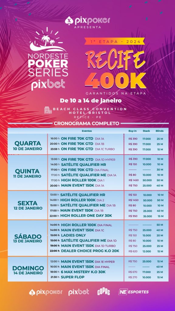 Está chegando a hora da abertura de mais uma temporada do tradicional Nordeste Poker Series (NPS Pixbet), que marcará o início de uma parceria histórica do maior circuito nordestino com o PixPoker, o aplicativo mais acessível do mundo! E para começar 2024 com tudo, Recife será mais uma vez palco dessa festa que faz o poker da região ser um dos melhores do Brasil.