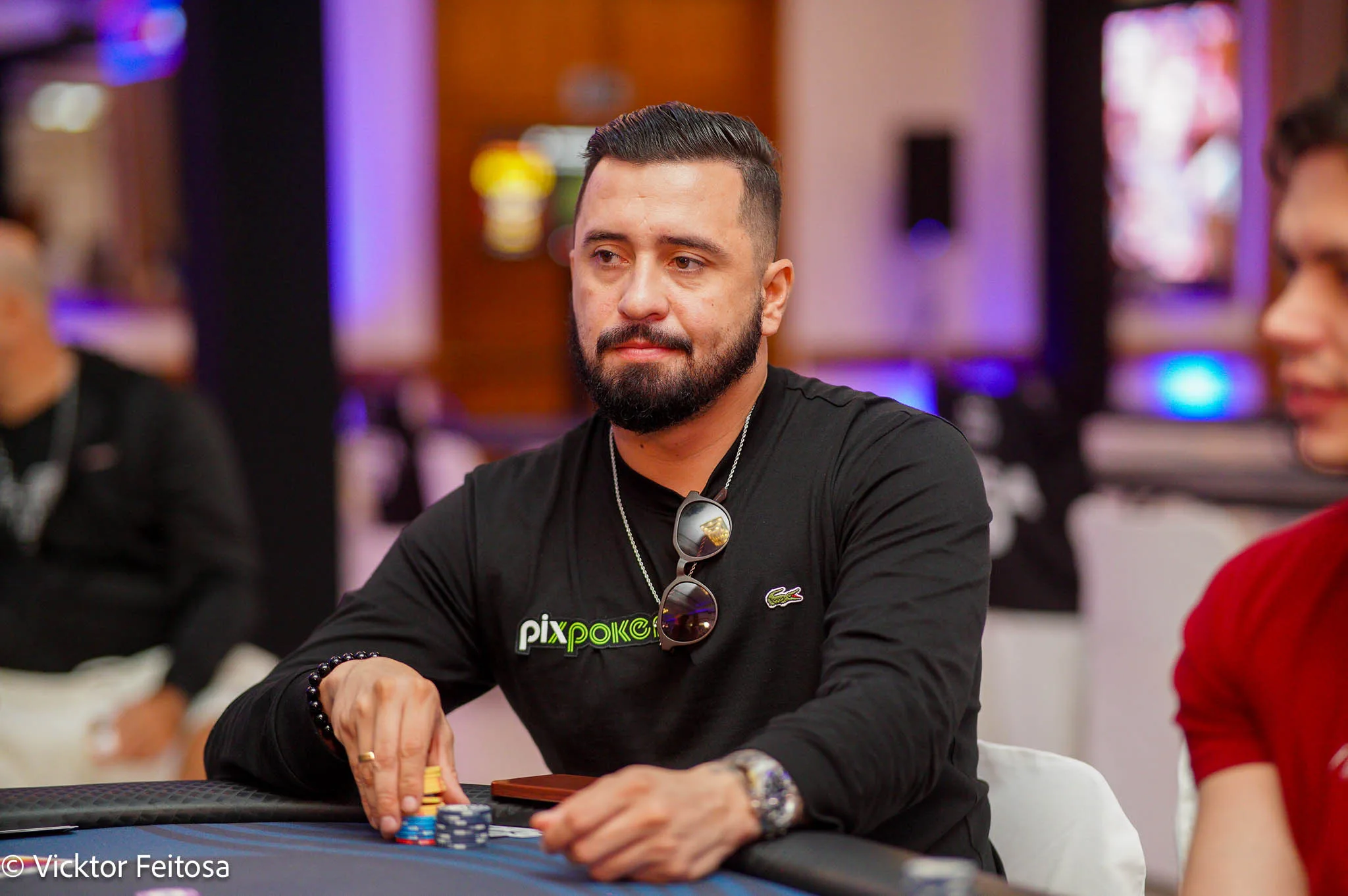Elvis passou com um bom stack para o Dia 2 e pilotava com muita segurança. Ele enfrentava uma mesa que tinha Rafa Silva, Bruno Foster e Daniel Xavier, por exemplo. Porém, em uma jogada, o paraense tentou agressivar e encontrou outro adversário com full house.