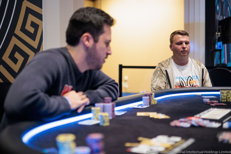 Ponakovs tinha a ação e utilizou um time bank para pensar. Após o período, ele anunciou uma aposta de 370.000 fichas e deixou poucas fichas para trás. Automaticamente, Mateos jogou quatro time banks para frente e passou a analisar a jogada do adversário.
