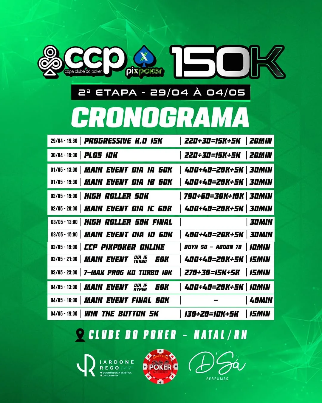 A parceria entre a Copa Clube do Poker (CCP) e o PixPoker fizeram do evento o grande destaque do Rio Grande do Norte. O circuito realizado em Natal está tendo um belíssimo ano de 2025, constantemente batendo garantidos e reunindo os principais jogadores de toda a região para torneios da mais alta qualidade.