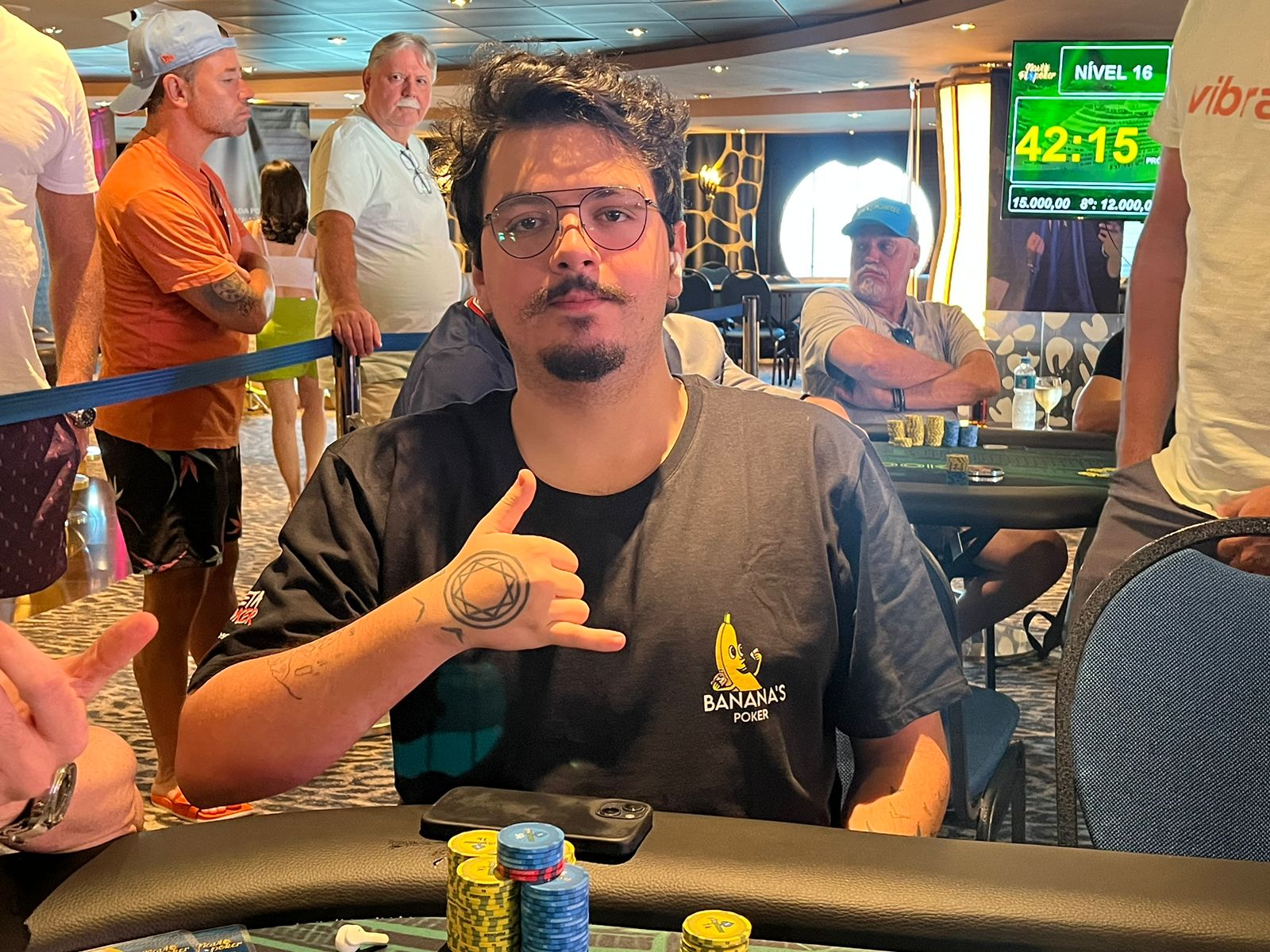 Chip leader do Dia 1A, Vicente Barrinha é o bolha do ITM do Main Event do Navio PixPoker depois de mão inacreditável