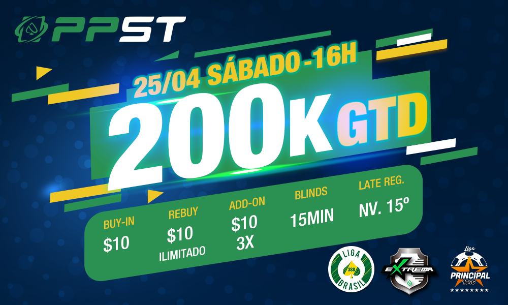 Neste sábado começa no PPPoker mais uma série PPST (PPPoker Super Tournaments), que desta vez traz 11 torneios aos clubes da Liga Brasil, Liga Extrema e Liga Principal, com uma premiação garantida total de R$ 3 milhões. Com eventos variados e para todos os níveis de buy-in, a série se estenderá até dia 04 de maio, segunda-feira.