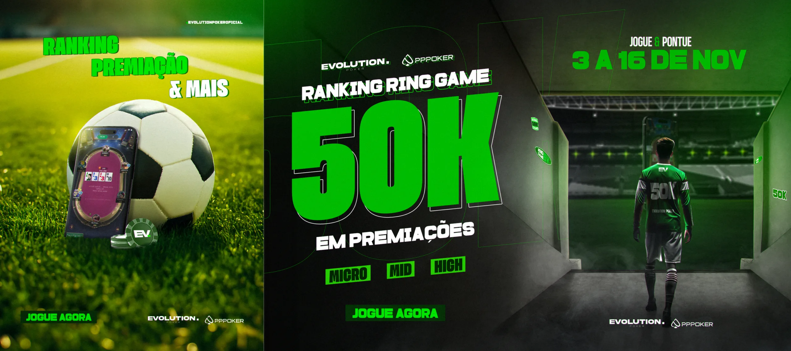 A promoção da Liga Evolution vai acontecer entre os dias 03 e 16 de novembro. E os prêmios são belíssimos: ao todo, o Ranking Ring Game vai entregar R$ 50 mil em prêmios, um belo aditivo para os jogadores da principal liga do PPPoker.