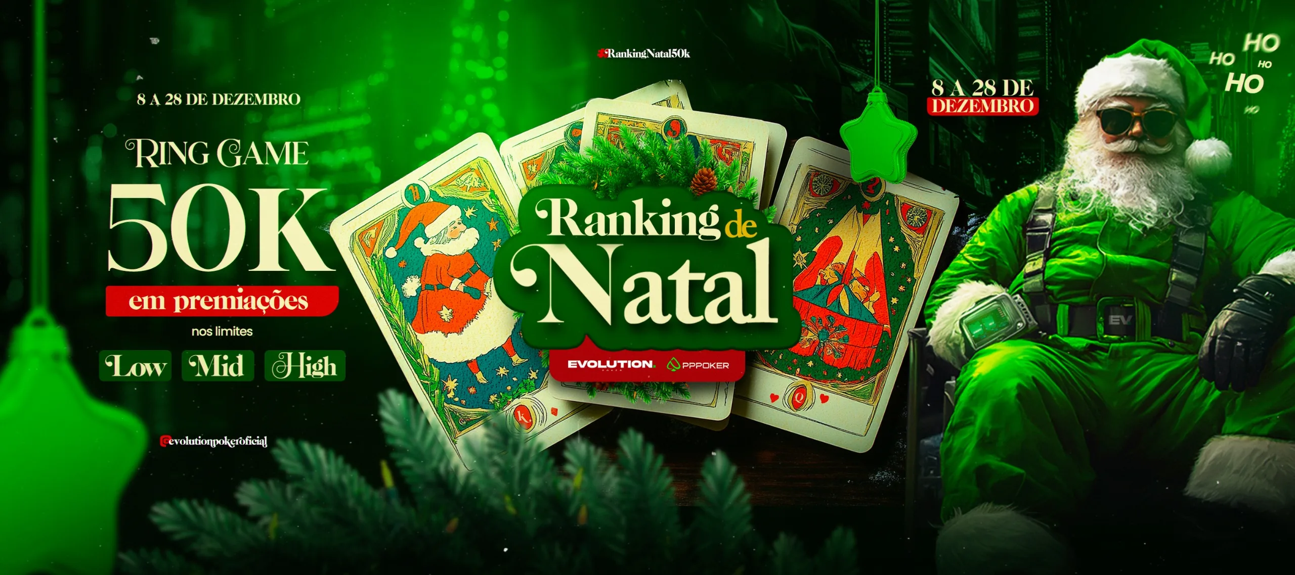 O clima de festa já chegou na Evolution Poker. A maior liga do PPPoker preparou uma ação especial para o mês de Natal e, após o sucesso da última edição, a Evolution lançou, novamente, a promoção Ranking Premiado, que vai distribuir prêmios para os jogadores de cash game da liga.