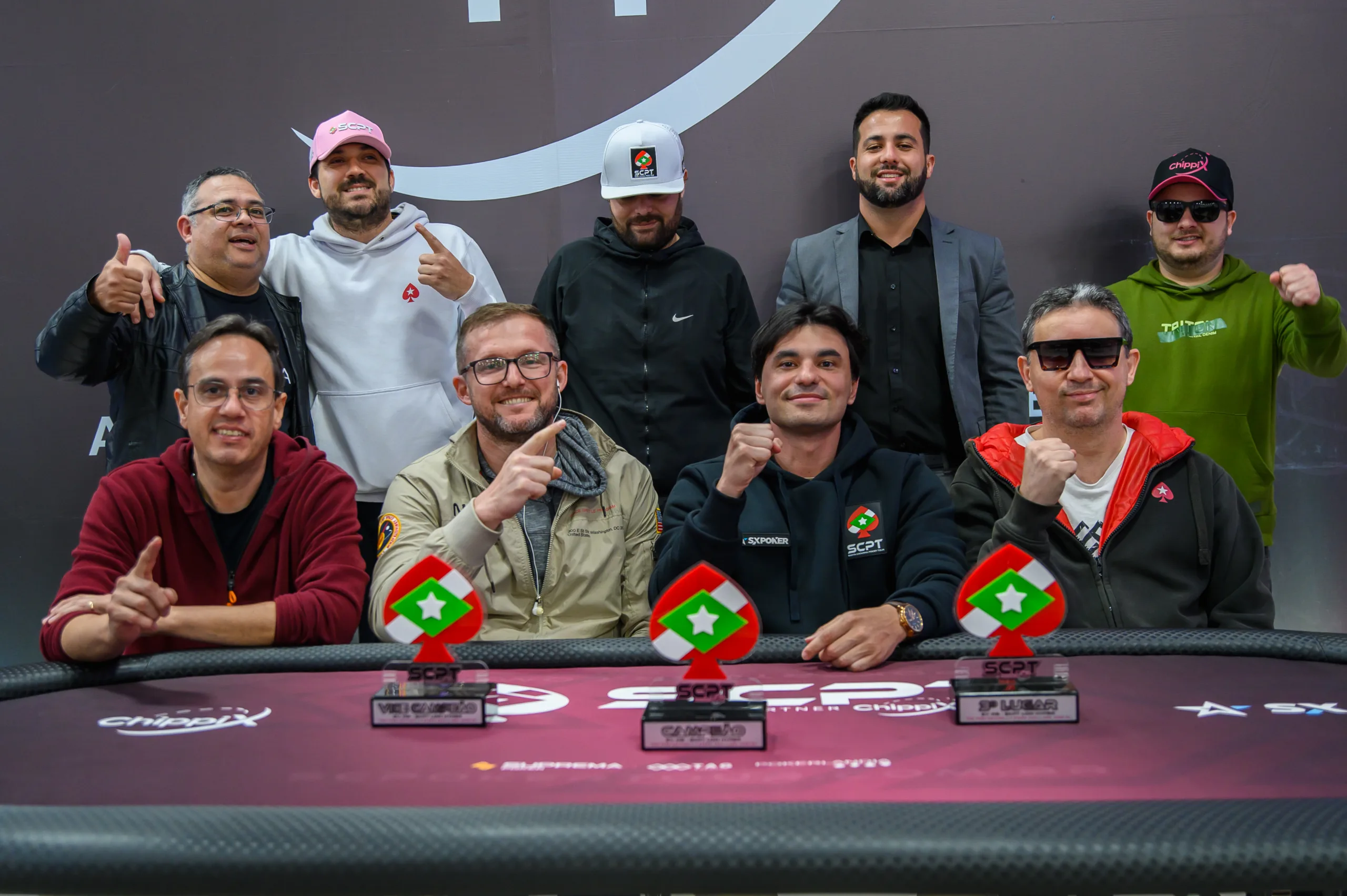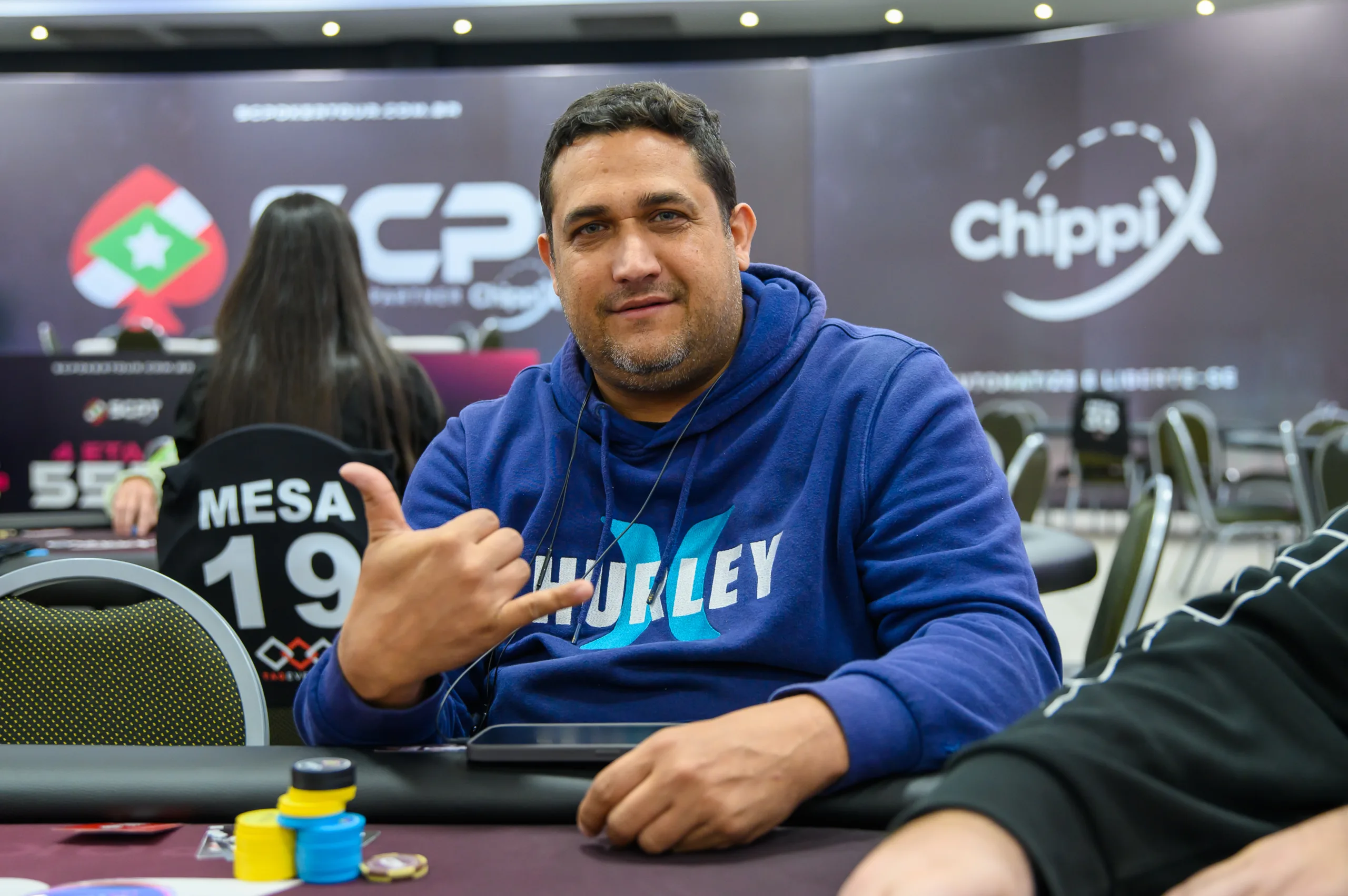 “Eu jogo há uns oito anos eu acho. O poker para mim é um passatempo, mais me divirto do que isso seja uma profissão ou algo do tipo. Eu sou focadinho, só não estudo muito”, contou Dudu sobre a relação com o poker. Inclusive, ele já virou expert em vencer torneios no último dia do SCPT.