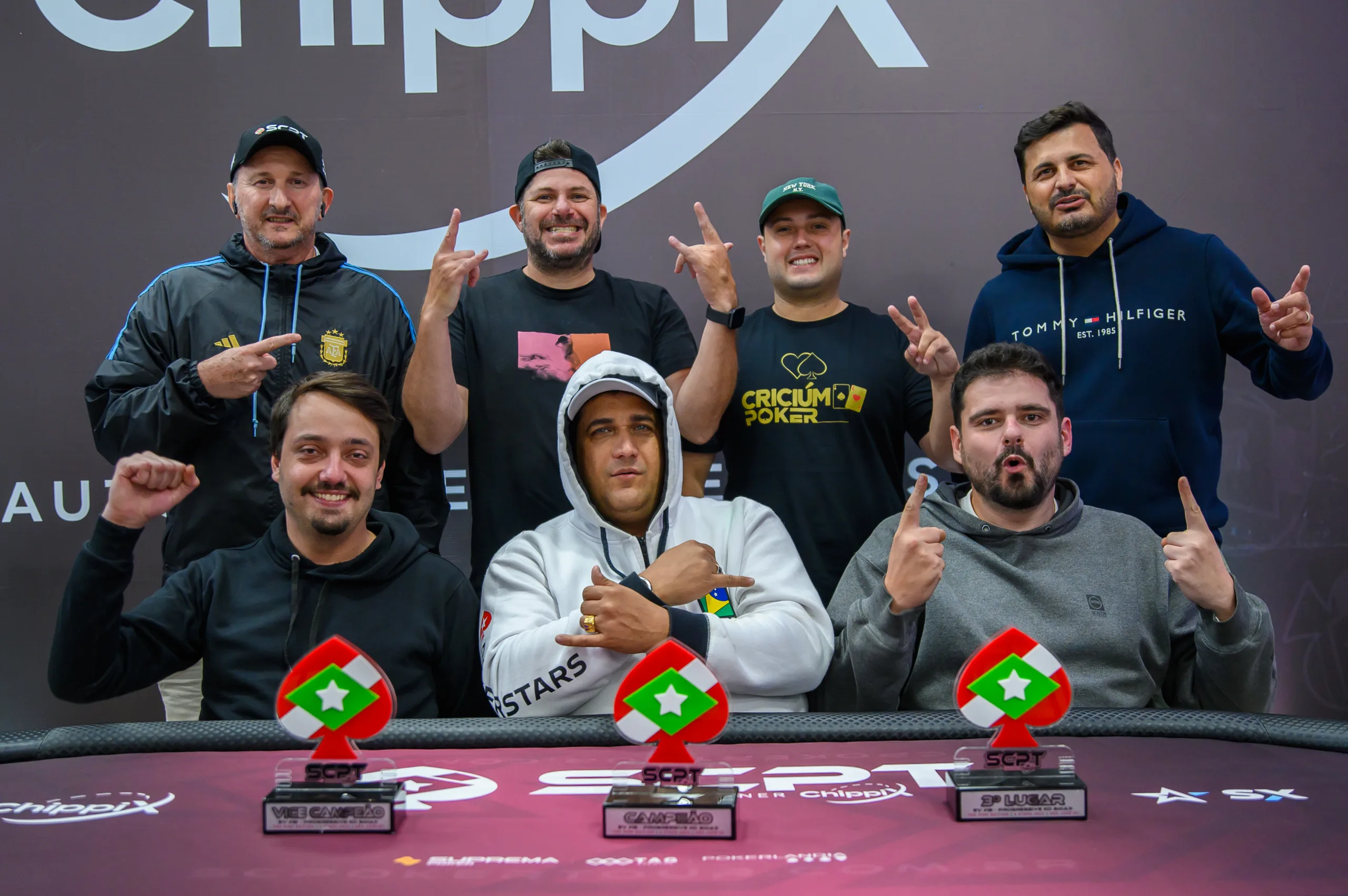 No poker não há espaço para desânimo e o grande campeão do Main Event do Santa Catarina Poker Tour é a prova disso. Eduardo Suares, o Dudu, veio para o último grande ato da série desanimado, mas incentivado pela esposa Bruna deu a volta por cima para sair com um lindo troféu em mãos e, claro, uma bela forra.
