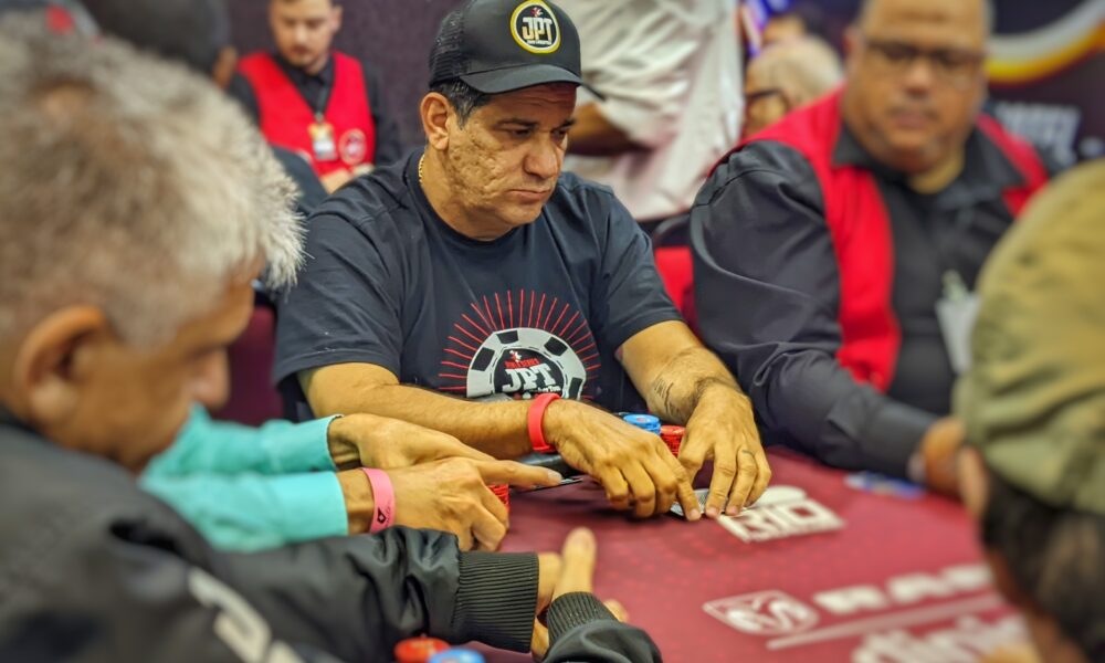 O sócio do evento passou por uma mesa repleta de amigos para voltar a vencer no JPT