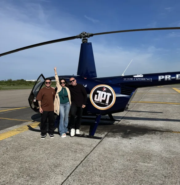 Thales Morelli, Laura Cintra e o embaixador Anthony Temperine estiveram no voo especial
